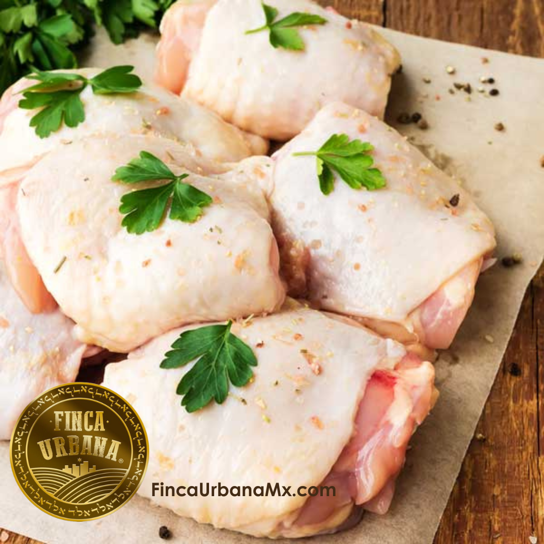Los muslos de pollo orgánicos regenerativos son piezas completas de la parte inferior del ave (muslo y pierna), provenientes de pollos criados en libertad bajo un modelo de ganadería regenerativa certificada en México, sin hormonas, sin antibióticos, y alimentados con granos orgánicos, forraje y acceso constante a pastos e insectos naturales.