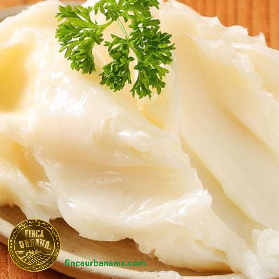 Proceso: La grasa y subproductos se trabajan a bajas temperaturas con dos procesos de refinado —uno antes de enfriar y otro posterior al enfriamiento— para preservar su pureza y calidad. Una vez empacado, el producto puede conservarse en refrigeración para mejorar su textura o mantenerse a temperatura ambiente, ya que al ser grasa, no corre riesgo de descomposición.
